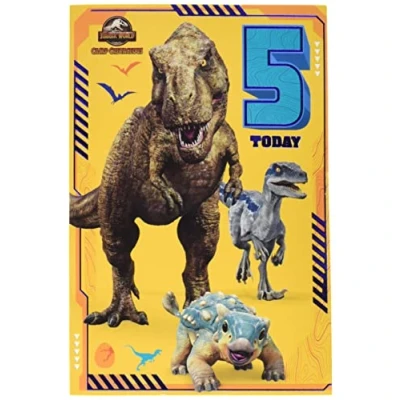 Official Jurassic World The Movie Age 5 Birthday Card, 5th Card for Him, Recyclable Officially Licensed