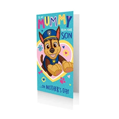 OFFICIAL PAW PATROL DESIGN: Features Chase in a bright, colourful design that fans of the show will love FROM SON MESSAGE: Wording reads “To My Mummy From Your Son… On Mother’s Day,” making it extra special and personal PERFECT FOR MOTHER’S DAY: A thoughtful way for a son to celebrate Mum on Mother’s Day INCLUDES ENVELOPE: Comes complete with a suitable sized envelope, ready to give BLANK INSIDE FOR YOUR MESSAGE: Plenty of space inside to write a heartfelt personal note