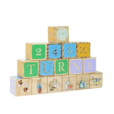 LOVABLE CHARACTERS: With these stacking blocks, your child will be whisked away to an imaginary land with the ever-so-lovable Peter Rabbit and his friends. With Peter Rabbit blocks, learning the alphabet and numbers is an adventure! NATURAL MATERIAL: Unlike plastic, our wooden toy blocks are environmentally friendly. Not only that, but wood as a material is safe for even a small child and doesn't contain any nasties, so you can rest easy as your child uses all their senses to spark their imagination. A PERFECT GIFT: These adorable blocks are perfect as nursery decor: spelling out your little ones name, or any sweet messages like love, boy, girl or baby for a lovely finishing touch! DEVELOPS ALL SENSES: Early development & activity toys are crucial for your child's future. Our building blocks promote touch, focus, fine motor skills and language skills. These skills will, in turn, reduce anxiety as your child will be able to navigate the world independently. A CONFIDENCE BOOSTER: Children that play with sensory toys are proven to be more confident. As they build and play, they get a sense of pride and independence. This is a natural way to reduce anxious behaviour, such as thumb sucking and nail-biting., Manufacturer: Rainbow Designs