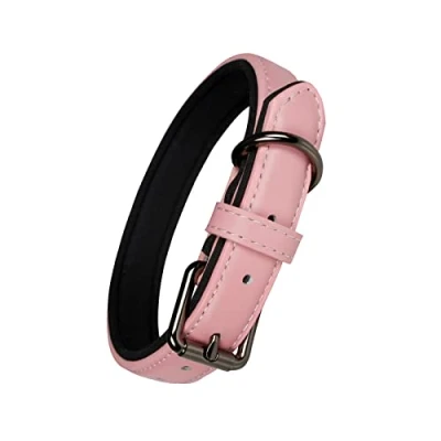 Small Dog Collar: For neck 12.5" to 15.7". Width is 0.7"(2cm). Total length of collar is 45cm. The red leather dog collars are for small dogs and the size may be different from others, so please compare the size table carefully before placing an order. Soft Padded Dog Collar: Real soft and wear resistant leather. The diving material lining has a good feel, which makes the collar comfortable to wear and does not hurt the pet's skin. Sturdy Dog Collar: The buckle and d ring are made of high quality alloy, which will not easy to oxidize. Heavy duty metal clasp won't snap or freeze shut like plastic buckles, and will handle strong pull. Pink Dog Collar: Our pink leather dog collar is odor resistant, breathable and non irritating. The padding provides comfort around the neck for dogs who like to pull. Comes with a gift: New dog collar comes with a hole puncher to adjust for ideal size for your puppy at different ages. If there is any problem with the product when you receive the goods, just email us please and we will give you a satisfactory answer.