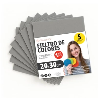 OFITURIA Felt for DIY Crafts, Soft and Flexible Coloured Fabric Sheets Sewing, Patchwork, School Projects, Textile Art Decoration, 20 x 30 cm (Grey, 5 pcs)