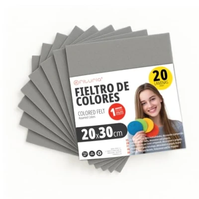 OFITURIA Felt for DIY Crafts, Soft and Flexible Coloured Fabric Sheets Sewing, Patchwork, School Projects, Textile Art Decoration, 20 x 30 cm (Grey, pcs)