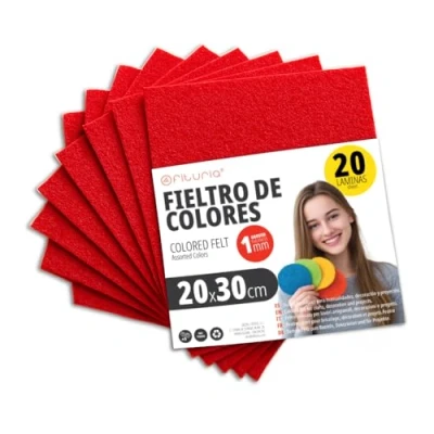 OFITURIA Felt for DIY Crafts, Soft and Flexible Coloured Fabric Sheets Sewing, Patchwork, School Projects, Textile Art Decoration, 20 x 30 cm (Red, pcs)
