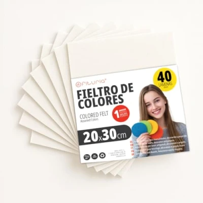 SOFT TEXTURE & VIBRANT COLORS: This felt fabric set features a soft touch surface and a flexible structure that makes it easy to handle. The bright and assorted colours included in the pack are perfect for bringing joy and dynamism to any craft project. Ideal for both decorative and functional uses, the uniform finish of the felt gives a professional touch to every creation. Versatility in Multiple Applications: Perfect for DIY Crafts, Creative Sewing, Patchwork Projects, School Decorations, Doll Making, Christmas Ornaments, Costumes and more. This felt is a must-have tool both in the classroom and home, widely used by teachers, parents, craftsmen and scrapbooking enthusiasts. Practicality for young and old: Easy to cut, sew, glue and handle, even by children. The material is manageable and safe, making it an excellent choice for school activities, children's craft workshops and family projects. Compatible with scissors, hot glue, basic sewing machines and other DIY accessories. HIGH STRENGTH AND DURABILITY: This felt is a non-woven material, which means it does not fray when cutting and retains its shape over time. Ideal for long-lasting projects as it won't break down easily or lose color. The firmness of the fabric provides stability to the creations, making it an excellent choice for structured crafts or hanging decorations. IDEAL SIZE & EASY STORAGE: Each sheet comes pre-cut in a manageable size, perfect for working with no need for pre-measurements or complex cutouts. Stores easily without deforming, ideal to always have on hand at home, school or in the workshop. A practical choice for both quick crafts and more elaborate projects.