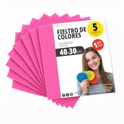 OFITURIA Felt for DIY Crafts, Soft and Flexible Coloured Fabric Sheets Sewing, Patchwork, School Projects, Textile Art Decoration 40 x 30 cm (Fuchsia, 5 pcs)