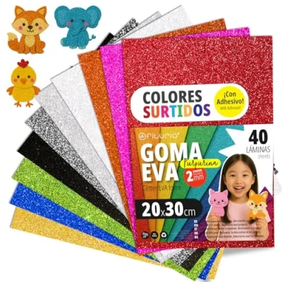 VERSATILITY IN EVERY SHEET - This glitter EVA foam pack includes flexible, sturdy, and easy to cut sheets, making them an ideal choice for a wide variety of school crafts, creative projects and art activities. Thanks to their thickness and soft texture, they are ideal for cutting precise shapes or creating three-dimensional figures, both for beginners and advanced users. CREATIVITY Blast - Designed to stimulate imagination, our glitter EVA sheets are perfect for scrapbooking, classroom decoration, children's projects, costume making, 3D figures, and more. They are an excellent tool for DIY activities, both at home and school, boosting the creativity of children, parents, teachers and crafters. COMMON TOOLS COMPATIBILITY: These glitter EVA foam sheets are easily manipulated with school scissors, precision cutters and hot glue, making work easier both at home and at school. Its structure allows for clean and fast cuts, ideal for quick tasks or higher complex projects. ACCESSIBLE AND SAFE FOR EVERYONE - Ideal for kids, educators, craft professionals and DIY enthusiasts, these EVA foam sheets are designed with ease of use in mind, offering a safe experience without sharp edges or toxic materials. A fun and functional option to stimulate creativity at any age. VIBRANT GLITTER COLORS: Each pack includes sheets in rich and vivid colors, perfect for highlighting your creations. The EVA finish brings an attractive and professional visual touch to your projects, ideal for party decorations, themed showcases or visual school activities., Manufacturer: Ofituria