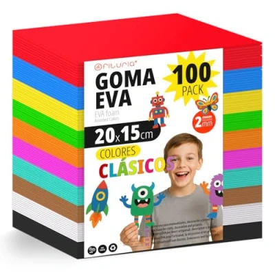 CLASSIC COLORS PACK: Assortment of EVA rubber with basic colors such as red, blue, green, yellow, black and other essential tones for any type of creative work. PERFECT FOR SCHOOL USE: Ideal for classroom activities, creative workshops, billboards, masks and teacher-led projects in kindergarten and primary school. EVA RUBBER EASY TO CUT AND GLUE: Flexible and safe material, suitable for scissors, cutters, die-cutting machines and thermoforming techniques to create original volumes and shapes. MULTI-PURPOSE MATERIAL FOR MANUALITY: Each EVA rubber sheet with classic colors is durable, not easy to break and keep shape, ideal for makers, letters, signage or set designs. PERFECT FOR SCENOGRAPHY AND COSTUME: EVA rubber in classic colors is widely used for school sets, billboards, covers, masks, costumes and collages in all kinds of creative projects., Manufacturer: Ofituria