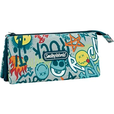 Modern and youthful school case with three interior compartments to keep everything organized Ideal size for storing all kinds of school supplies: crayons, pens, rubber or highlighters. This triple school case has a comfortable flat design that is easy to carry in hand or place on any surface. Durable polyester case for everyday use and a double zipper system: a main zipper for direct access to the three inner compartments and an additional zipper for access to the central inner pocket Characteristic design of the collection with urban graffiti and emoticons in different shades, perfect for matching IR with your backpack or your wallet