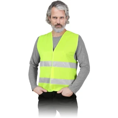 OX-LUMI - High visibility waistcoat with two horizontal reflective stripes, made of 100% polyester. The weight is 120 g/m2. Velcro fastener THIS PRODUCT IS RECOMMENDED FOR - Logistics including transport and handling (warehouse work), metalworking and operators of machinery and equipment and their repair, construction and renovation work, heavy industry, automotive industry including construction, mechanics and repair of vehicles and painting COMPLIES WITH EN ISO 13688 AND EN ISO 20471 - ISO 13688 specifies general requirements for protective clothing and ISO 20471 specifies high visibility clothing that visually signals the presence of the operator to the operator
