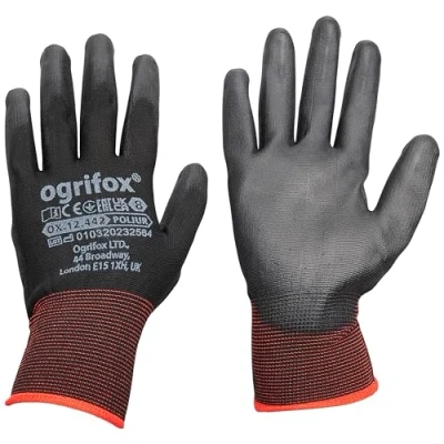 Ogrifox OX Poliur_Bb8 Protective Gloves, Ox.12.442 Poliur, BlackBlack, 8 Size, Pack of 24/12 pairs