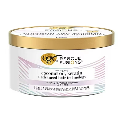 OGX RESCUE FUSIONS REPAIR AND RECOVERY HAIR TREATMENT MASK deeply repairs and revives damaged, over-processed hair in just one use. Infused with Coconut Oil, Keratin Proteins, and Silk Amino Acids, it reduces breakage, makes hair three times easier to comb, and delivers 72 hours of shiny, smooth results.