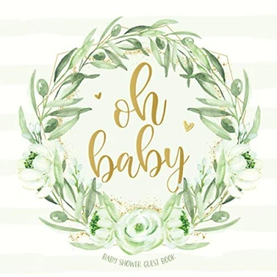 Oh Baby: Greenery Baby Shower Guest Book with Wishes & Advice for Parents + Gift Log Keepsake Photo Pages Olive Branch Guestbook Gender Neutral