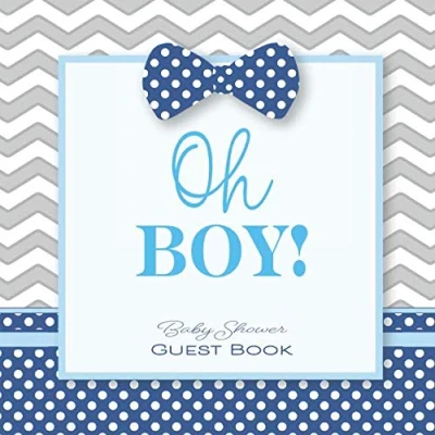 Oh Boy! Baby Shower Guest Book: GuestBook with Wishes & Advice for Parents + BONUS Gift Tracker Log Keepsake Pages Little Man Bow Tie Gray Blue Navy