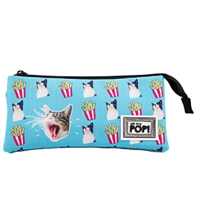Oh My Pop! Angry Cat Triple HS Pencil Case, Turquoise, 23 x 11 cm