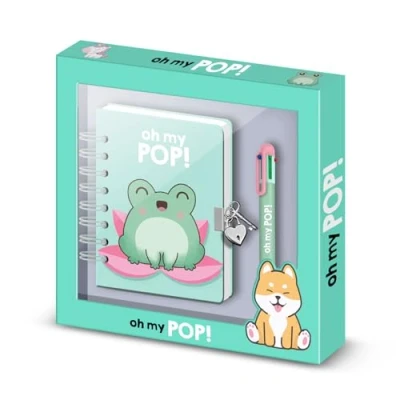 Oh My Pop Froggy Pack of A5 Diary + 6 Coloured Pen, Turquoise