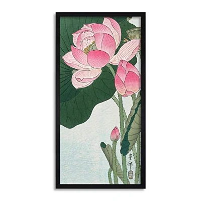 Ohara Koson Blooming lotus flowers Long Framed Art Print Wall Poster 25x12 inch