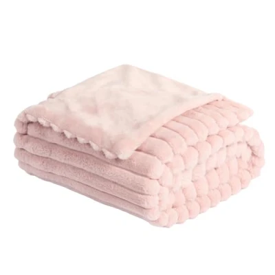 OHS Faux Fur Ribbed Pink Throw, Winter Warm Thick Blanket for Bed Sofas Fleece Throws Home Decorative Comfy Super Soft Couch Cover 125 x 150cm Blush
