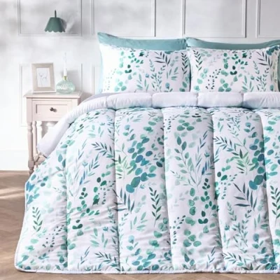 Double Bed Duvet: The coverless quilt features a beautiful sage floral print on one side with a fresh white reverse, giving you two elegant looks in one duvet and an easy way to refresh your bedroom décor and this double coverless duvet provides a warm and restful sleep, night after night. 200 x 200cm: This set includes a double coverless duvet and 2 matching pillowcases 50 x 75cm, giving you everything you need for a cohesive and comfortable bedding experience. Lightweight and compact, this double duvet is perfect for camping trips or travel All-Season Comfort: The double coverless duvet offers a perfect balance of warmth and breathability with its 10.5 Tog rating, making it suitable for both summer and winter use. Stay cosy year-round without overheating or feeling too cold. Soft & Cosy Microfibre Fabric: Crafted from high-quality 100% polyester, hollowfibre filling and 10.5 tog, this coverless duvet feels luxuriously soft against your skin. The fabric's gentle texture enhances comfort, providing a restful night’s sleep every time. Easy Care & Washable: Designed for convenience, this double duvet and its matching pillowcase are fully machine washable, making it easy to maintain a fresh and clean bedding setup with minimal effort.