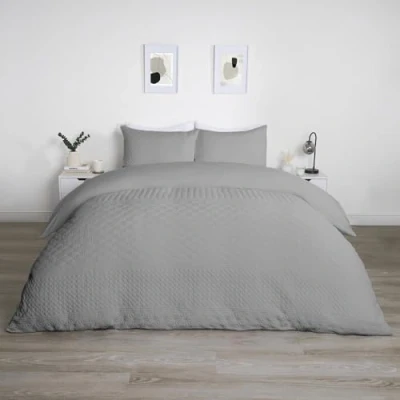 Double Bedding Set: Filled tribal pinsonic double quilt cover set with matching luxury pillowcase. Embossed double duvet set adds a stylish grey bedding accent to your bedroom decor design. Comfy and soft microfibre double bed duvet set with pinsonic design is comforting and cosy - perfect for spring/summer duvet set changes. Double bedding set fabric feels comfortable on skin, ensuring a relaxing sleep night after night. 200cm x 200cm: Double bed covers crafted with secure button closures sized for standard double beds. Matching filled tribal pinsonic pillowcases measuring 50cm x 75cm completes stylish grey bedding double bed set. Breathable double duvet set made from 100% microfibre polyester with 75gsm and luxury filled pinsonic design. Machine washable quilt cover double at 40°C, easy care tumble dry on low temp. Perfect double duvet bedding gift on Birthdays, Mothers Day, Anniversaries or Christmas. Luxury grey double duvet set for new homeowners or friends and family restyling their bedroom decor.