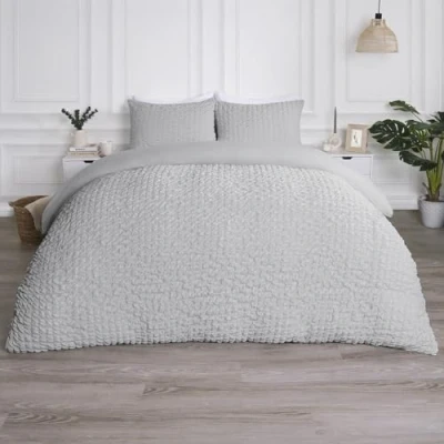 Grey Seersucker Duvet Cover: Seersucker duvet cover king size made with detailed geometric seersucker in embossed quilt style and matching luxury pillowcase. King waffle bedding set adds a stylish accent to any bedroom duvet set decor design. Super soft and comfy waffle bedding duvet cover king material guarantees a relaxing sleep, night after night. grey king duvet set fabric with embossed detail is ideal for sensitive skin and is soft to touch. 225cm x 220cm: Duvet king size covers set crafted with secure button closures for kingsize beds. Matching geometric seersucker pillowcases measuring 50cm x 75cm completes sophisticated grey king duvet cover sets. Waffle bedding seersucker breathable grey duvet sets king size for standard king beds crafted from 100% polyester, with 165gsm fabric. Machine washable duvet cover set at 40°C, easy care tumble and iron on low temp. Luxury king duvet covers gift for new homeowners or friends and family restyling their bedroom decor. Perfect king duvet covers present for Birthdays, Mothers Day, Fathers Day or Christmas.