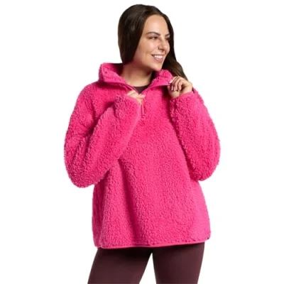 OHS Half Zip Women's Jacket, Teddy Fleece Jacket Women Top Sweatshirt Pullover Ultra Soft Cosy Womens Casual Long Sleeve Sweater for Travel Hiking, Pink X/XL