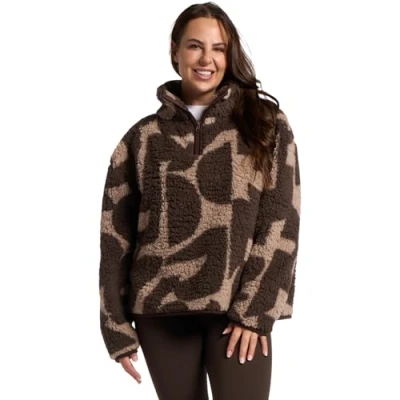Half Zip Fleece Women: Featuring a modern brown geometric print, this ladies fleece jacket combines fashion and functionality, perfect for adding a trendy touch to your outdoor or everyday wardrobe. Versatile & Travel-Ready Fit: Designed in a relaxed small or medium size fit, this fleece jacket women offers plenty of room for movement and layering ideal for hikes, long flights, road trips or everyday errands. Functional Half-Zip Neckline: The convenient half-zip closure offers customisable coverage and easy layering, making it perfect for adjusting to changing weather during hikes or travel. Ultra-Soft Teddy Fleece Comfort: Crafted from premium super-soft fleece 100% polyester with 300gsm teddy fleece, this half zip sweatshirt women wraps you in cosy warmth, making it your perfect companion for chilly days, lounging or layering on outdoor adventures. Durable & Easy-Care Fabric: Made with quality fleece that resists pilling and maintains its softness wash after wash this is a low-maintenance must-have for any cold-weather wardrobe. This womens fleece jacket easy care is simply machine washable at 30° C and do not tumble dry.