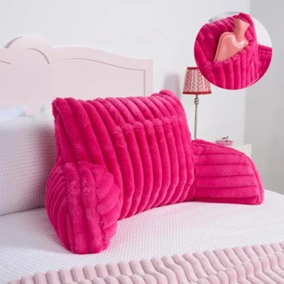 Reading Pillow for Bed Adult: The beautiful hot pink colour adds a touch of elegance and warmth to any room. This stylish cuddle cushion is a perfect addition to your bedroom, living room or reading nook, creating a cosy and inviting atmosphere. Versatile & Multifunctional: Whether you're lounging, watching TV, reading or gaming, this reading pillow is designed to provide maximum comfort and support for a variety of activities. The supportive arms also offer a comfy place to rest your hands, phone or tablet. Ergonomic Back Support with Arms: Designed to offer excellent lumbar support, this cuddle pillow features supportive arms and a firm backrest, ensuring you can sit up comfortably for hours. Perfect for maintaining good posture while you read, play games or relax in bed. Heatable Pocket for Extra Comfort: Featuring a built-in heatable pocket, this cuddle cushion allows you to add warmth to your relaxation experience. Simply insert a heat pack to create a soothing, cosy atmosphere ideal for chilly nights or when you need some extra comfort while reading or gaming and you can also simply add a hot water bottle to convenient front pocket, sit back and enjoy the warmth and cosiness Super Soft Faux Fur & Ribbed Texture: Made with luxurious faux fur and a ribbed design, the reading pillow offers an incredibly soft and plush feel. Its unique texture provides extra cosiness, perfect for sitting up in bed, gaming or simply relaxing and cuddle pillow made from 100% soft polyester, hollow fibre filling and easy care simply wipe clean. Supportive cuddle cushion for adults makes for a great gift on Birthdays, Mothers Day, Fathers Day or Valentines Day.