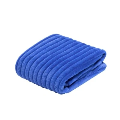 OHS Ribbed Faux Fur Throw, Soft Cosy Warm Winter Thick Fleece Blanket for Bed Sofa Settee Home Decorative Throw Lightweight Comfy Single Throws, Cobalt Blue 125 x 150cm