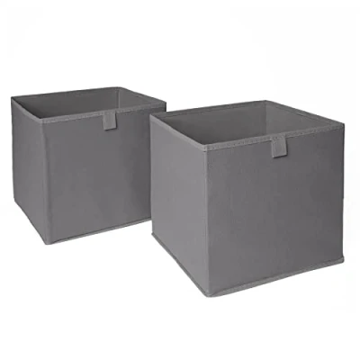 Organise and tidy with our set of 2, durable fabric storage boxes, perfect to store toys, shoes or clothes. This item is a pop up lightweight storage solution and has been crafted with card lining making this sturdy and durable. Colour: Dark Grey. Matching handy loop, allows for easy, pull out and pushback. Size: Square - 27cm Height, 27cm Depth, 27cm Width. Ideal for bookcase storage, whilst being collapsible Material: 100% Polyester, with cardboard base and sides Included: 2 x Storage Boxes. Care Instructions: Wipe clean with damp cloth. Can be folded and stored., Weight: 2.1605301676 Pounds, Manufacturer: OHS