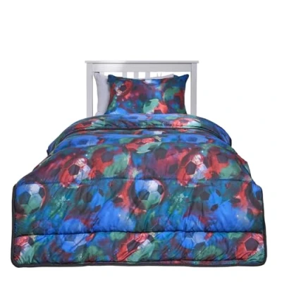 OHS Single Coverless Duvet 10.5 Tog, Soft Microfibre Fabric Vibrant Neon Football Themed Design Kids Comfortable Year Round Use Washable Bed Duvets & Pillowcase