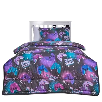 OHS Single Coverless Duvet 10.5 Tog, Soft Warm Microfibre Fabric Black & Purple Gaming Design Kids For All Season Comfort Washable Duvets Pillowcase, Neon