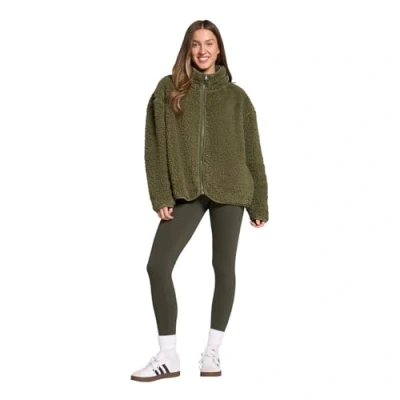 OHS Teddy Fleece Jacket Women, Ladies Jackets Full Zip Soft Cosy Warm Winter Womens Sweatshirt Long Sleeve Casual Top for Travelling Outdoor Hiking, Khaki L/XL