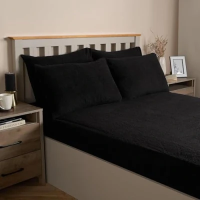 4 Pack Black Pillow Cases: Teddy fleece pillow cases that supports all sleepers for a comfortable sleep. 4 pack pillows adds decorative piece to bed and helps ease you into a deep relaxing sleep, night after night. Black teddy bear fleece pillow cases feels as good as it looks. Elegantly designed for stylish bedrooms and living rooms. Warm thermal bed pillows fits perfectly with interior home decor. 50cm x 75cm: Standard size fluffy pillows pack of 4. Teddy bear fleece pillowcase addition to any double bed, king, superking or living room sofa bed. Teddy fleece pillowcases made from 100% soft polyester, with 140gsm. Fluffy soft pillowcases supports neck, head and shoulders and can alleviate pain issues, leaving you relaxed and cosy for a comfortable night’s sleep. Christmas gifts for new homeowners, friends or family. Machine washable teddy fleece pillowcase pack of 4 at 30°C, tumble dry on low heat.