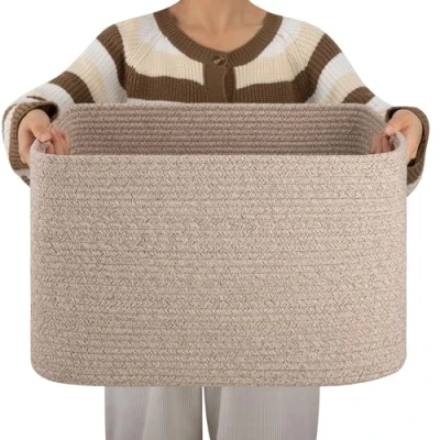 Popular Size:18.1 x 14.1 x 11.8 inches(46 x 36 x 30 cm), ideal for throw Suitable for children's rooms, living rooms and any other room in the house that needs extra storage options: fits on cabinet shelves, bookshelves or desk. NATURAL COTTON OIAHOMY high quality laundry basket is made of cotton rope, no chemicals, no unpleasant smell, safe for intimate washing. In addition, this laundry basket has no sharp edges and a hard surface, safe for children, the elderly and pets. DOUBLE REINFORCED HANDLES We use high quality cotton rope as raw material and all stitches are distributed and fine, which makes the baskets have better wear resistance and durability for many years. In addition, the handle of this large basket has a unique design and is wrapped with a thick double-layer thread rope to prevent tearing and keep its shape and never fall off. FOLDABLE BASKETS These rectangular storage baskets are foldable for easy moving and taking. Simply fold the basket flat for space-saving storage when not in use or transportation. Notes: The toy basket is folded, but it will quickly turn back to its elegant shape if you fill it with some cushions or blankets, and ironing is a great idea to remove the creases.