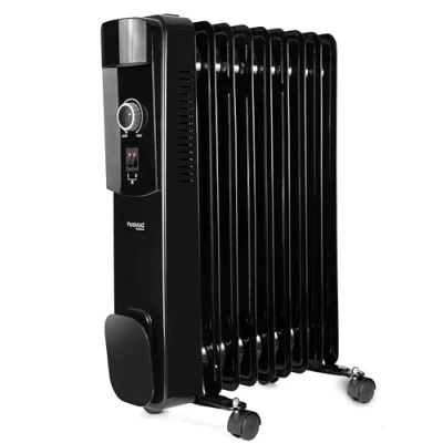 Oil Filled Radiator Free Standing Electric Heater Energy Efficient Low 9 Fin, 2500W, 3 Heat Settings Black, by Nuovva