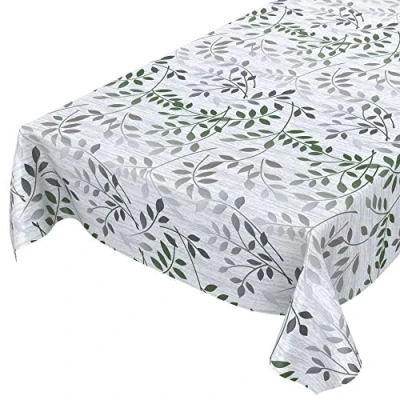 Oilcloth Tablecloth Washable Garden Round Oval Square Indoor Outdoor Leaves Silver Green 140 x cm