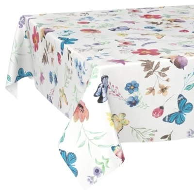 Oilcloth Tablecloth, Washable, Oilcloth, Easy Care, Water Repellent, Lotus Effect, Garden Butterflies, 100 x 140 cm, Cut Edge