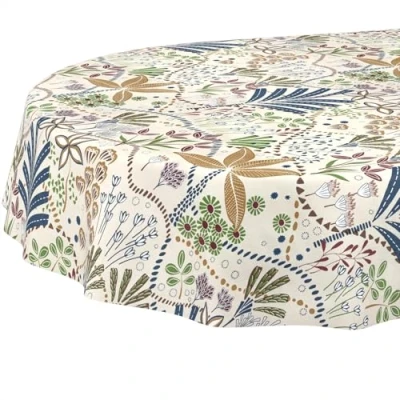 Oilcloth Tablecloth, Washable, Oilcloth, Easy Care, Water Repellent, Lotus Effect, Garden Ethnic Oval, 220 x 140 cm, Cut Edge