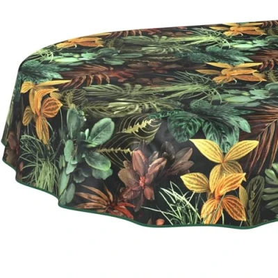 Elegant oilcloth tablecloth: This high-quality oilcloth tablecloth with jungle leaves motif offers robust workmanship and a soft drape at the table. The washable oilcloth tablecloth protects tables from stains, scratches and wear. EASY CARE WAX TABLECLOTH - Because it has a transparent lotus effect surface coating, this tablecloth with leaves is washable and weatherproof. Ideal wash cloth tablecloth for kitchen, dining room and garden table, all year round. Tablecloth with structure: with its finely embossed surface, the oilcloth tablecloth exudes tropical charm reminiscent of textile. Jungle oilcloth tablecloth with non-woven backing for more slip resistance. Oilcloth tablecloth can be ironed: simply iron out folds from the wax tablecloth over the back for the next use at a maximum of 30 °C. Ideal after washing or for a fresh look at the table. Tablecloth in many sizes: washable oilcloth tablecloth available in round, oval and square, many sizes to choose from. Configure your Mediterranean wax tablecloth if desired with colour-coordinated piping ribbon for even more elegance.