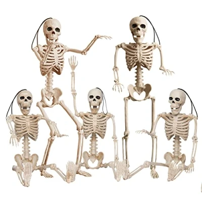 OKPOW 5 PCS 40cm Posable Halloween Skeletons Full Body Realistic Joints Hanging for Graveyard Decorations,Haunted House Accessories,Indoor Outdoor Spooky Scene Party Favors