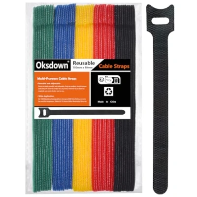 【Reusable and Adjustable】:These are both reusable and releasable. Easy to readjust. Easy to secure and undo, No need to cut the ties any more, feel free to use them as required. just undo the tie, and re-use. 【NO Peeling off】:The cable strap tiers are made of high-quality nylon material.fabric with hook & loop attachments,The material is strong and durable to ensure that cable remains in place and does not get lost. 【Wide Application】:For HDMI/printers/laptops/phone chargers/USB Data Cables, can also be used for heaphones, Tablet PC TV Home Office Electronics Wire, etc. 【After-Sales Service】: If you get any problems, please feel free to contact us at any time, and we will give you some appropriate solutions as soon as possible. 【What you will get】:50pcs x multicolour cable ties (10 mm x 150 mm)., Manufacturer: Oksdown