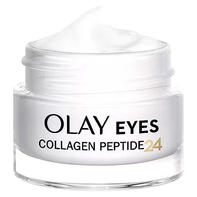 Olay Collagen Peptide Eye Cream restores and hydrates the delicate eye area with a blend of collagen peptides, niacinamide, and vitamin E to reduce fine lines and wrinkles. Lightweight and non-greasy, it delivers 24-hour moisture for smoother, younger-looking skin in just 14 days.