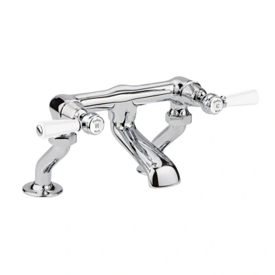Old London BC303DL Topaz Traditional Bathroom Deck Mounted Bath Filler with Lever Handles and Domed Collars, 175mm x 338mm, Chrome/White