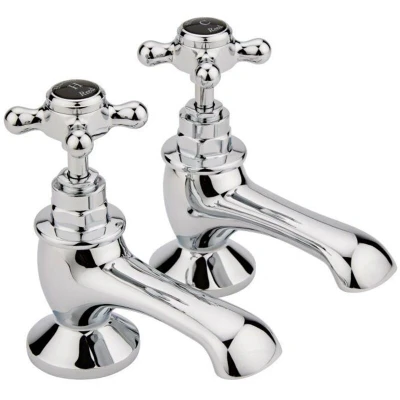 Old London BC401HX Topaz Traditional Bathroom Single Basin Taps with Crosshead Handles and Hexagonal Collars, 141mm x 66mm, Chrome/Black