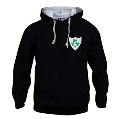 Old School Football Ireland Retro Rugby Hoodie Embroidered Logo Black