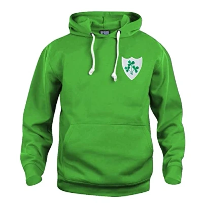 Old School Football Ireland Retro Rugby Hoodie Embroidered Logo Green