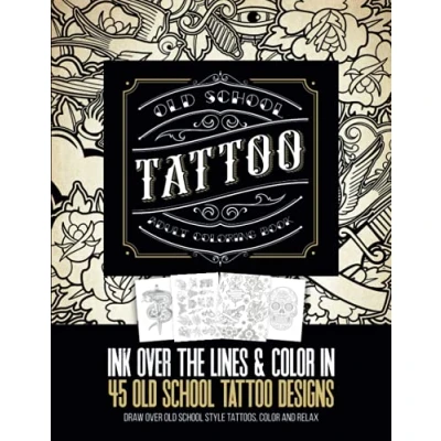 Old School Tattoo Adult Coloring Book: Draw Over The Outlines & Color 45 Designs. Learn to Tattoos Relaxation.