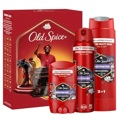 UNLEASH 24/7 UNBELIEVABLY FRESH* with Old Spice Gift Sets! (*with use of shower gel and deodorant) THE PERFECT GIFT for the party lover who parties day and night with freshness and a legendary scent THE GIFT SET INCLUDES a Night Panther 50ml deodorant stick, a 150ml spray and a 250ml shower gel TRY THE PERFUME QUALITY SCENT OF OLD SPICE NIGHT PANTHER: The rich fragrance of dark chocolate, spicy citrus and vanilla is dangerously addictive THE GIFT SET FEATURES a do-it-yourself domino game: simply cut out the pieces from the box and enjoy a smelltastic moment