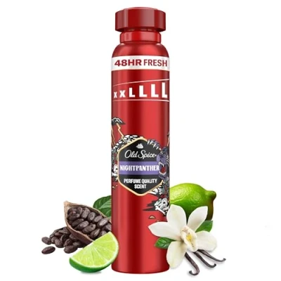 Old Spice Night Panther rich fragrance with Dark Chocolate, Vanilla Scent & Spicy Citrus Notes makes you unforgettable, you'll basically be the center of the universe Say goodbye to odours for 48 hours Acts like a protective shield against white marks and yellow stains Long lasting freshness everybody wants