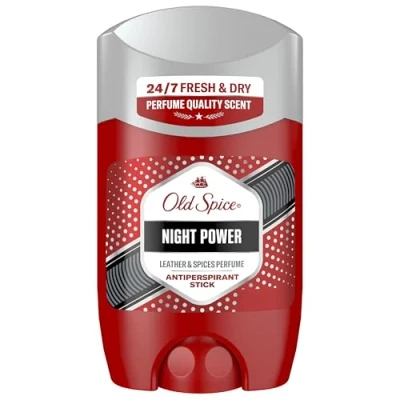 ENJOY LONG LASTING SWEAT PROTECTION AND PERFUME QUALITY SCENT! Old Spice antiperspirant stick keeps you 24/7 Fresh & Dry* with smelltastic confidence (*with daily use) GET THE PARTY STARTED WITH OLD SPICE NIGHT POWER: Dive into this seductive symphony of Leather & Spices, featuring warm cardamom, deep tonka and amber essence notes EXPERIENCE THE POWER OF THE 5X ACTIVE DEFENCE FORMULA: Lasting perfume / Odor protection / Sweat protection / Sweat activated scent release / Anti-Fade scent technology ANTIPERSPIRANT STICK FOR UNDERARMS: Odour and sweat protection with a dry and easy application. Say goodbye to wet patches and smell fantastic all day PREVENT WHITE MARKS: Old Spice antiperspirant stick keeps you dry while keeping those pesky white marks at bay